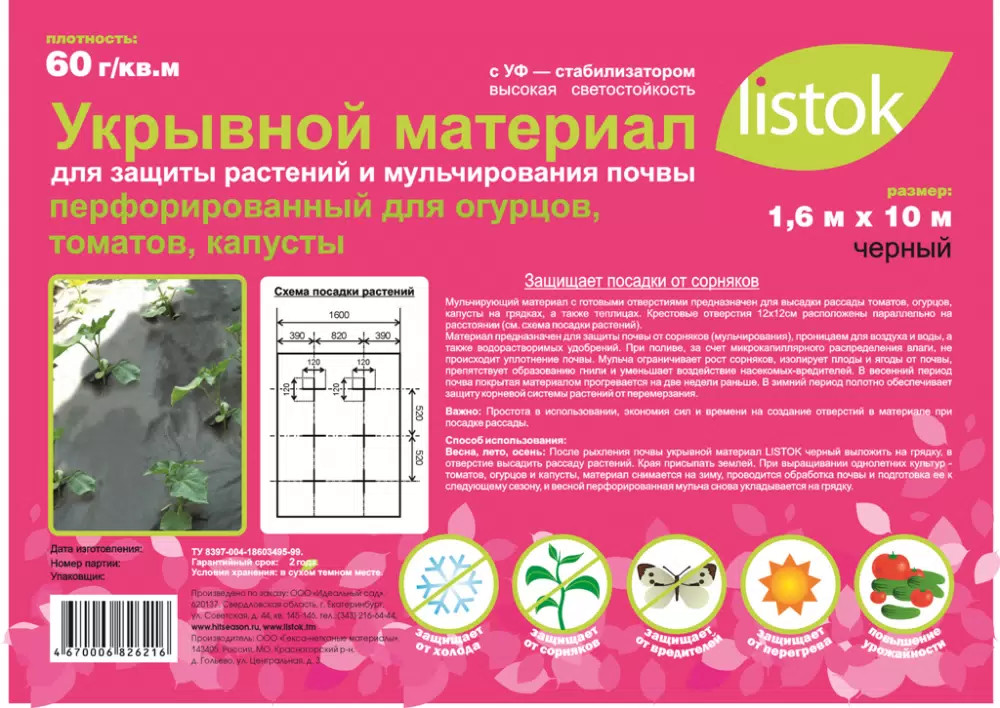 💳 Оплатить за товар можно при получении 🇰🇿 Есть бесплатная доставка по Казахстану от 1 дня 🎁 Копите бонусы с каждой покупки Защищает от сорной растительности, испарения влаги. Для мульчирования почвы. Легко пропускает воздух и воду, а также растворимые водой удобрения. При поливе грядки не происходит уплотнения почвы за счет микрокапиллярного распределения влаги. Так же СУФ 60 препятствует росту сорняков. В весенний период почва покрытая материалом прогревается в среднем на 2 недели раньше. Изолируя плоды и ягоды от почвы, он препятствует образованию гнили, уменьшает воздействие насекомых-вредителей; улучшает перезимовку корней растений, как в снежную, так и в бесснежную зиму. Материал выпускается с УФ-стабилизатором. Размер: 1.6 х 10 м. |