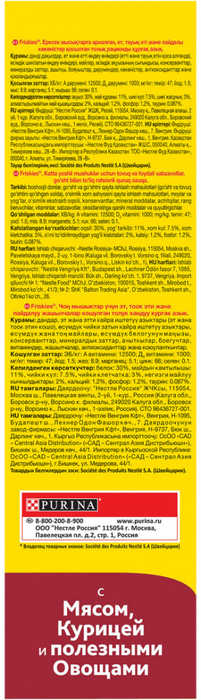 Friskies Корм сухой для кошек с мясом, курицей и полезными овощами