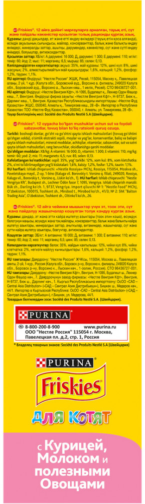 Friskies Корм сухой для котят с курицей, молоком и полезными овощами