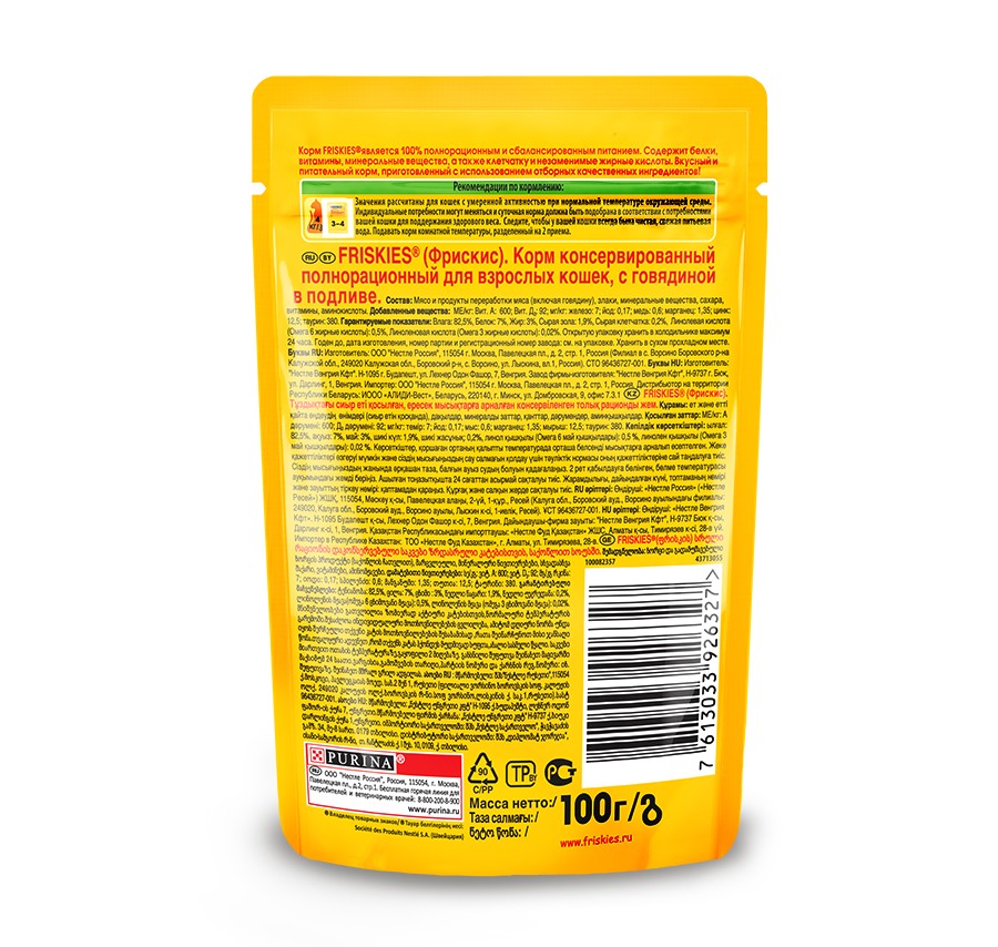 Friskies Корм для кошек Friskies «Говядина» (100 г)В данный момент этот товар отсутствует в продаже. Возможно, у нас найдется аналогичный или похожий товар здесь. Условия хранения товара: температурный режим от -10 до +25°С. |