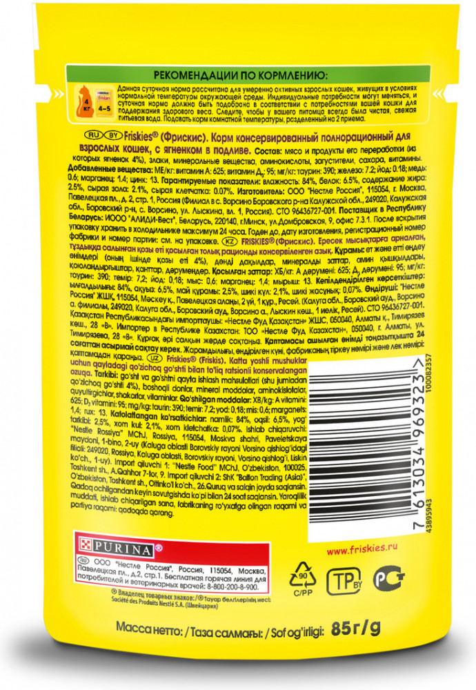 Корм, моей кошке, (Серия: Friskies, "ягнёнок") очень понравился. Спасибо, Флип.кз!