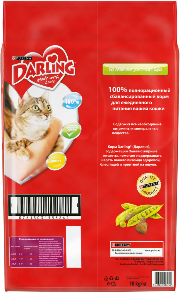 Добрый день! Коту всегда покупаем Корм для стерилизованных кошек и кастрированных котов Cat Chow «Special Care Sterill», в этот раз купила тот же самый корм и корм "Darling" для пробы так как недорогой, так котик начал просить еще и еще корма дарлинг пока он не закончился, а прежний игнорировал. В следующий раз планируем купить такой корм уже 10кг)) Недорого, а главное нравится коту)Спасибо! Правда, доставку ждали дней 10, не знаю у всех ли так.