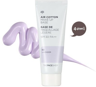 The Face Shop Основа под макияж легкая «Air Cotton Makeup Base SPF30+PA++», оттенок 02 Lavender