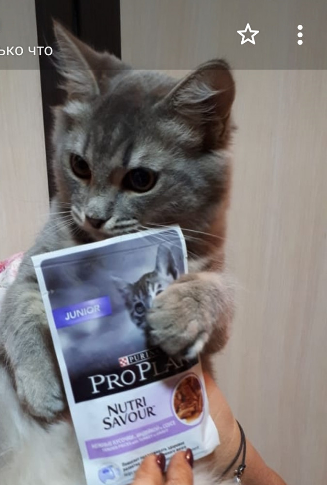Получили корм Pro Plan Junior для своего питомца. Отличная упаковка, отличное качество корма, которое по достоиству оценил наш питомец. Сбалансированное питание и полный комплекс витаминов для молодого котенка делает этот корм лидером из всей линейки кормов. Советую!
