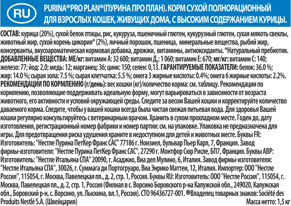 Purina Pro Plan Корм для домашних кошек «Pro Plan», с курицей (1,5 кг)В данный момент этот товар отсутствует в продаже. Возможно, у нас найдется аналогичный или похожий товар здесь. Серия: Housecat Условия хранения товара: температурный режим от -10 до +25°С. |