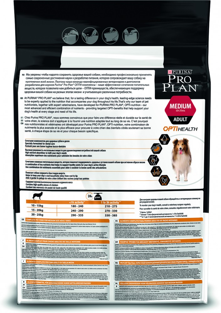 Purina Pro Plan Корм для взрослых собак средних пород с курицей-20% +475 сбалансированный состав бюджетный аппетит
