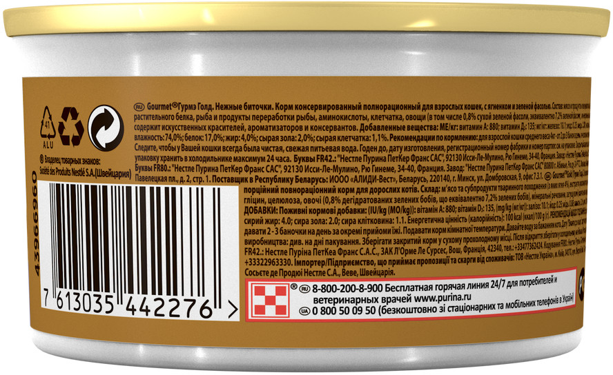 Gourmet Корм для кошек «Нежные биточки с ягненком и зеленой фасолью»В данный момент этот товар отсутствует в продаже. Возможно, у нас найдется аналогичный или похожий товар здесь. Серия: Gourmet Gold Условия хранения товара: температурный режим от -10 до +25°С. |
