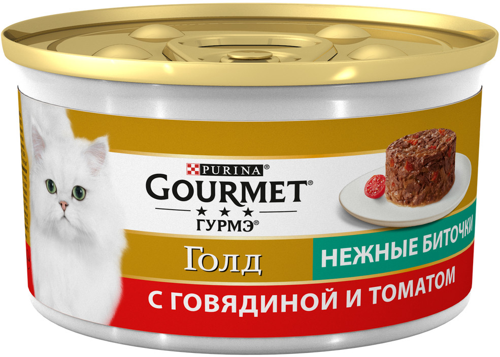 Gourmet Корм для кошек «Нежные биточки с говядиной и томатами»+8 вкус поедаемость натуральный запах подходит привередам ежедневное кормление