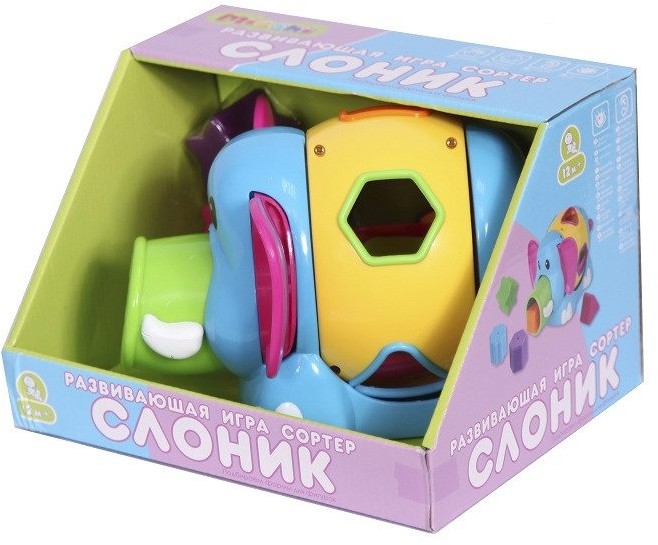 Потрясающий сортер. Брала этот и 627074. Небо и земля. Слоник яркий, туловище крутится с характерным звуком, что понравится самым маленьким, кто еще не может использовать игрушку по назначению. Фигурки и отверстия выполнены в одном цвете, что упрощает выполнение задачи, опять же для самых маленьких очень хорошо. Хобот немного поднят, при нажатии на ушки, фигурки выпадают из него. Но не сказала бы, что эта функция выполнена идеально. При заполненности всеми фигурками, они застревают и приходится трясти слона. А при засовывании 1 фигурки, она выкатывается даже при поднятом хоботе. Но снять за это бал много, а пол бала нельзя. Так что мой вердикт 4,5 из 5. Дочери 11 месяцев, после пары дней уже поняла основной принцип, что куда засовывать надо, а значит наглядность игрушки хорошая.