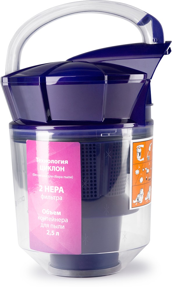 Система фильтрации в представленной модели пылесоса состоит из двух НЕРА-фильтров, которые обеспечивают высокоэффективную уборку. Используемые в устройстве фильтры способны удерживать до 99,97% частиц пыли диаметром 0,3 микрона. Это не позволяет даже мелкодисперсной пыли попадать обратно в помещение через воздуховыпускную решетку и становиться причиной аллергии, резкого снижения иммунитета, а также главным элементом, формирующим благодатную среду для размножения стрептококковых и стафилококковых бактерий.