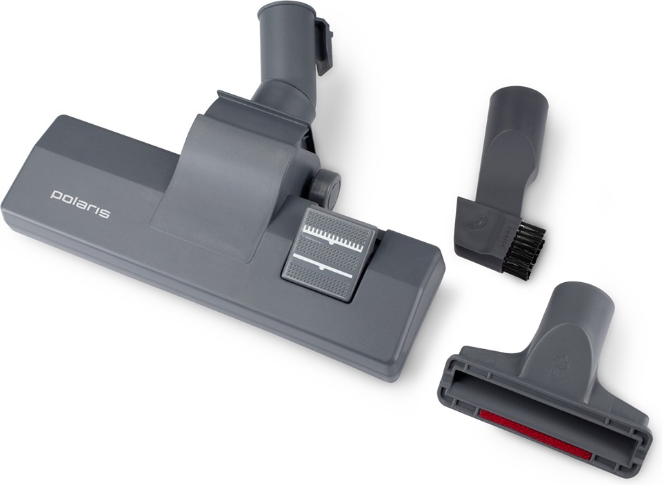 Модель Polaris PVC 1730СR укомплектовывается насадками, предназначенными для уборки разных поверхностей и мест. Насадка для пола и ковра, оснащенная переключателем щетины и колесиками, является универсальной и широко используемой. При помощи малой насадки можно проводить очистку обивки мебели, а щелевая, которая также имеет щетину, позволит пользователю навести порядок в самых труднодоступных местах.
