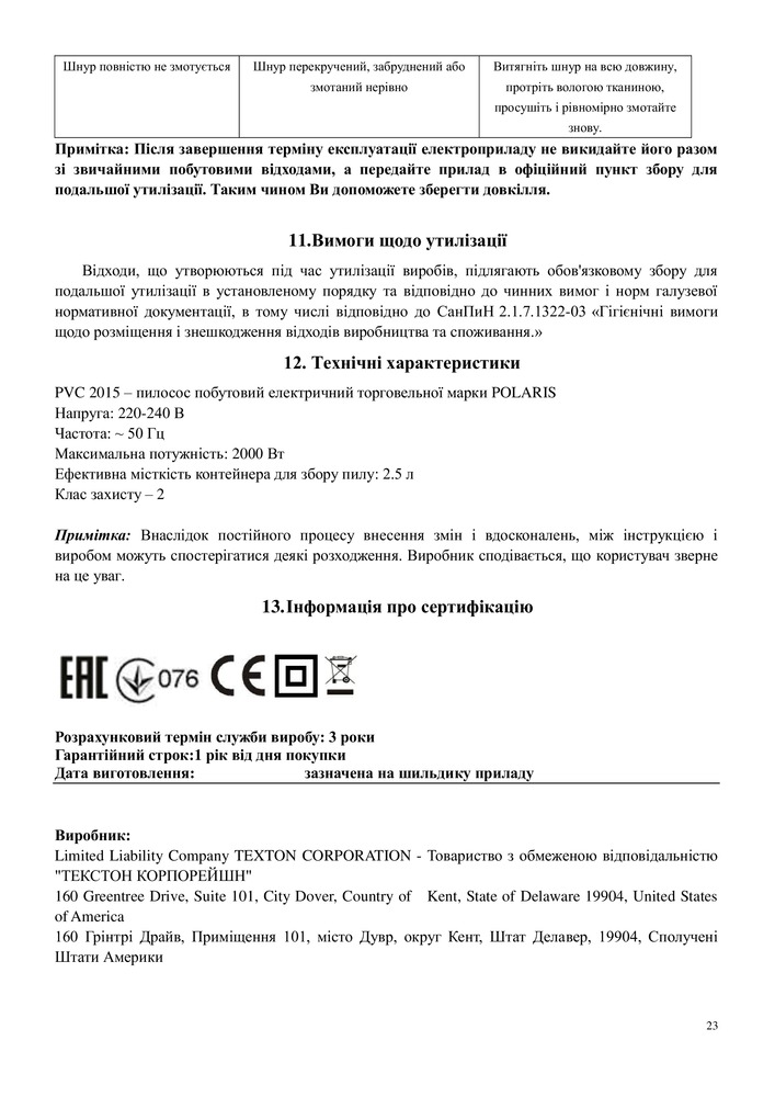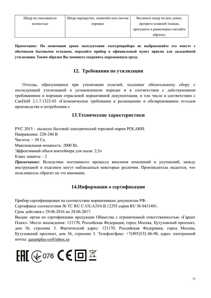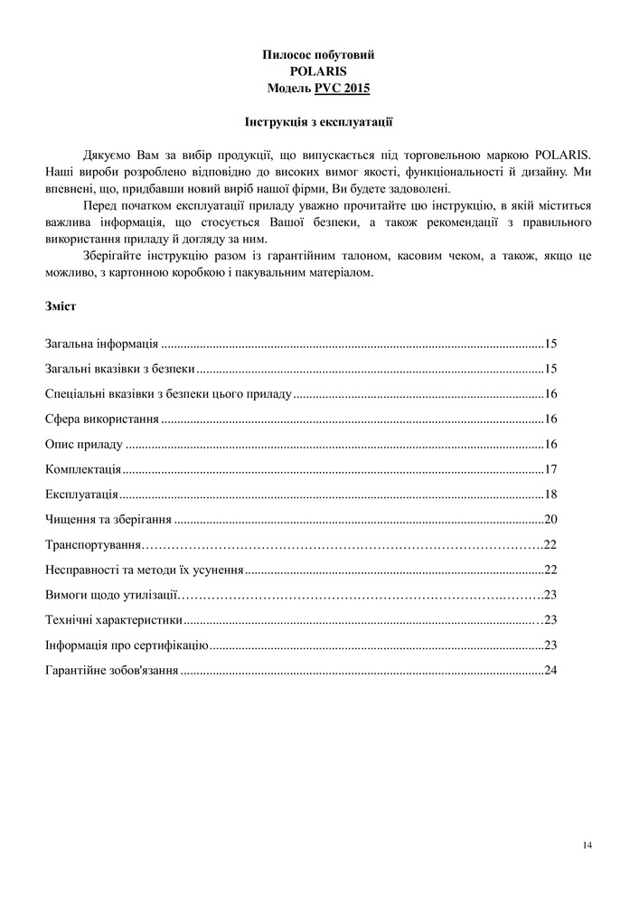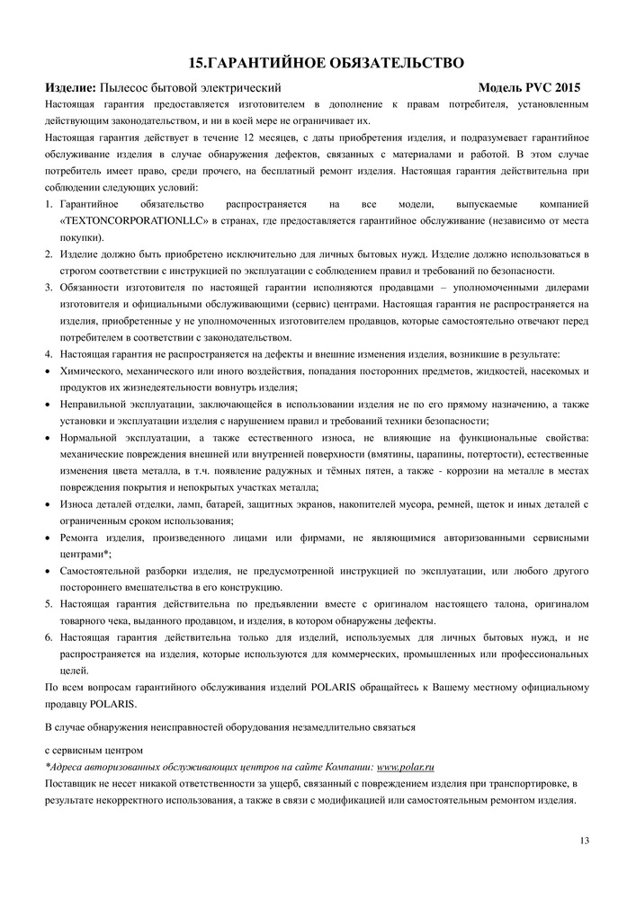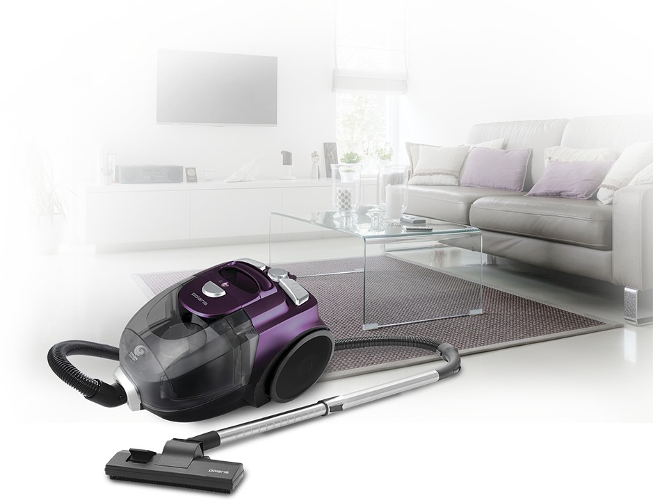 Все инженерные решения, которые были реализованы в данной модели пылесоса, направлены на то, чтобы упростить пользователю его эксплуатацию. Так, Polaris PVC 2015 оборудован системой автоматического сматывания 5-ти метрового сетевого шнура, которая приводится в действие простым нажатием кнопки. Гибкий шланг, на котором расположен регулятор силы воздушного потока, оборудован эргономичной ручкой, а трубка всасывания имеет телескопическую структуру, что обеспечивает пользователю удобное положение во время уборки. Благодаря индикатору заполнения пылесборника, месту хранения насадок и ножной кнопке питания уборка превращается в необременительное занятие.