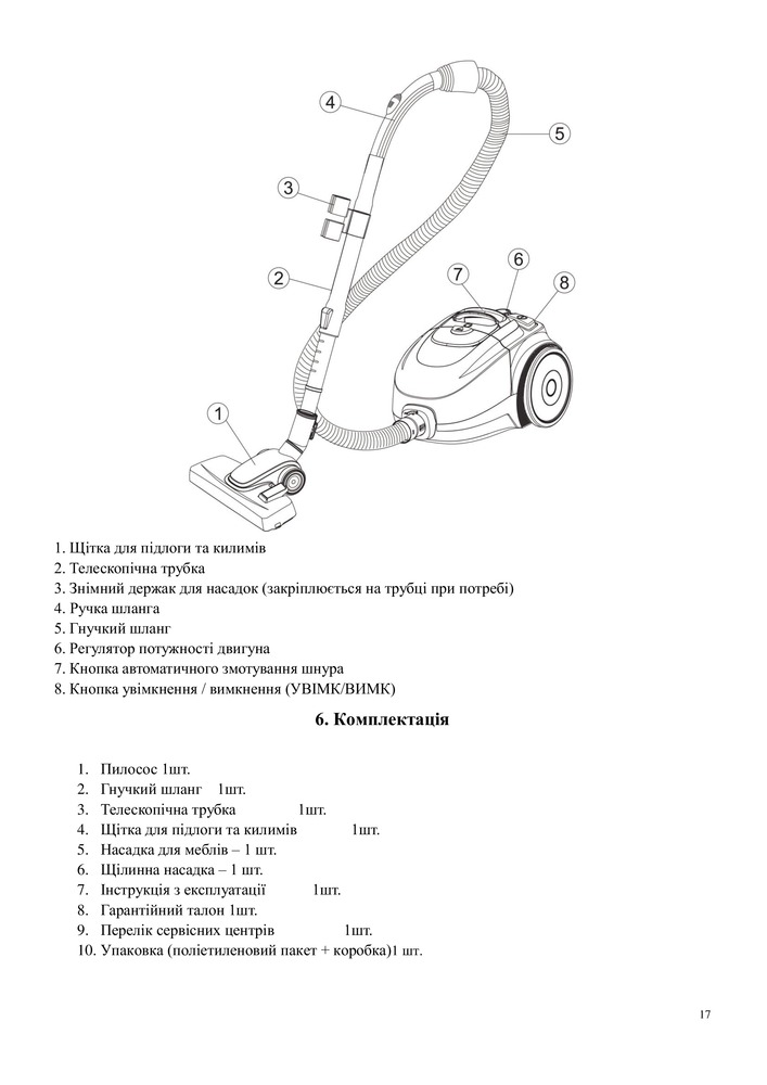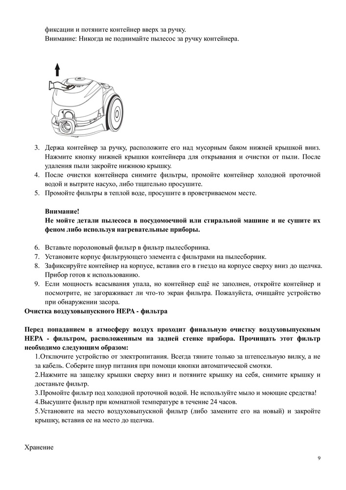 Пылесос комплектуется контейнером для сбора пыли, емкость которого составляет 2,5 литра. Такой объем позволит не прибегать к чистке пылесборника после каждой уборки. Оптимальными являются и показатели мощности представленного устройства – номинальная мощность составляет 2 киловатта, а мощность всасывания – 460 ватт.