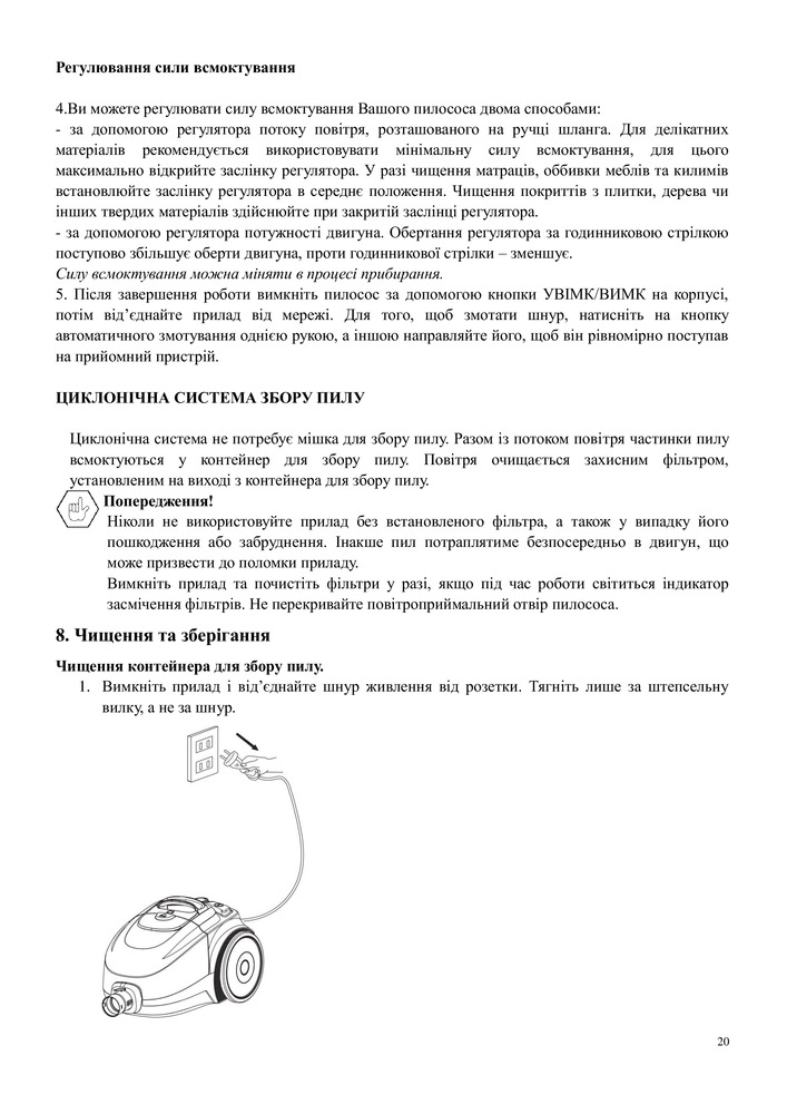▪ посредством регулятора интенсивности воздушного потока, который находится на ручке шланга (при среднем положении заслонки рекомендуется пылесосить обивку мебели и матрасы, при полностью открытой заслонке – деликатные материалы, при полностью открытой – деревянные, плиточные и другие жесткие напольные покрытия).
