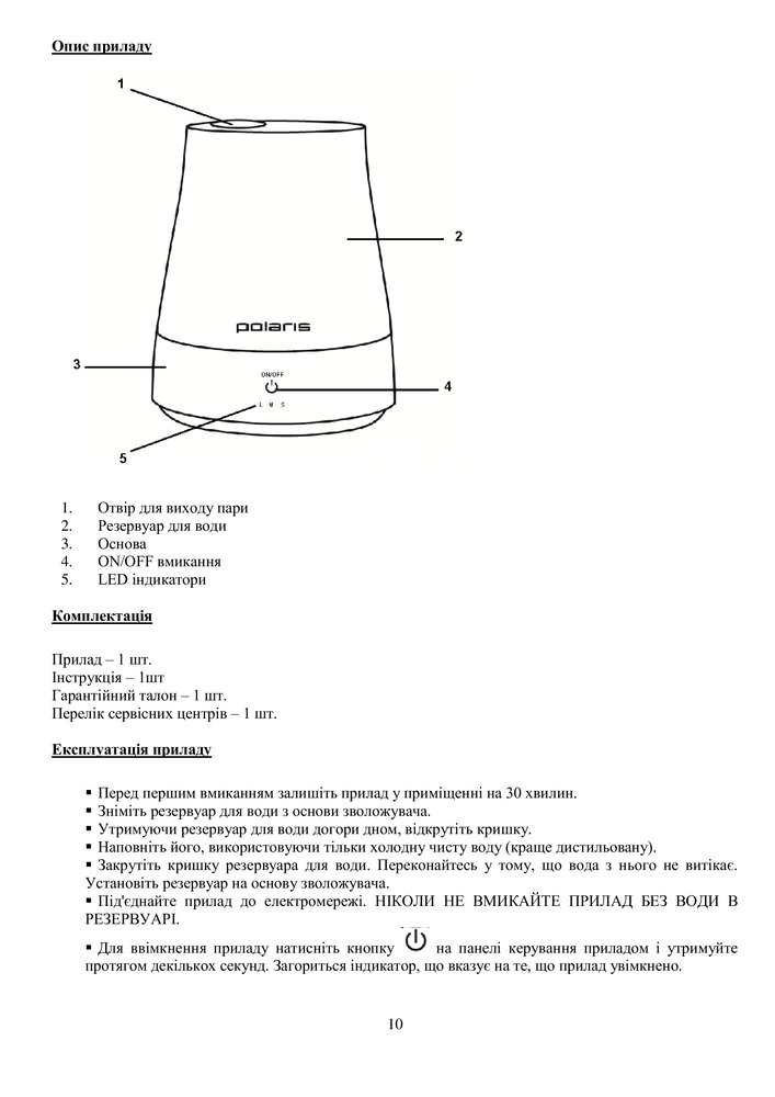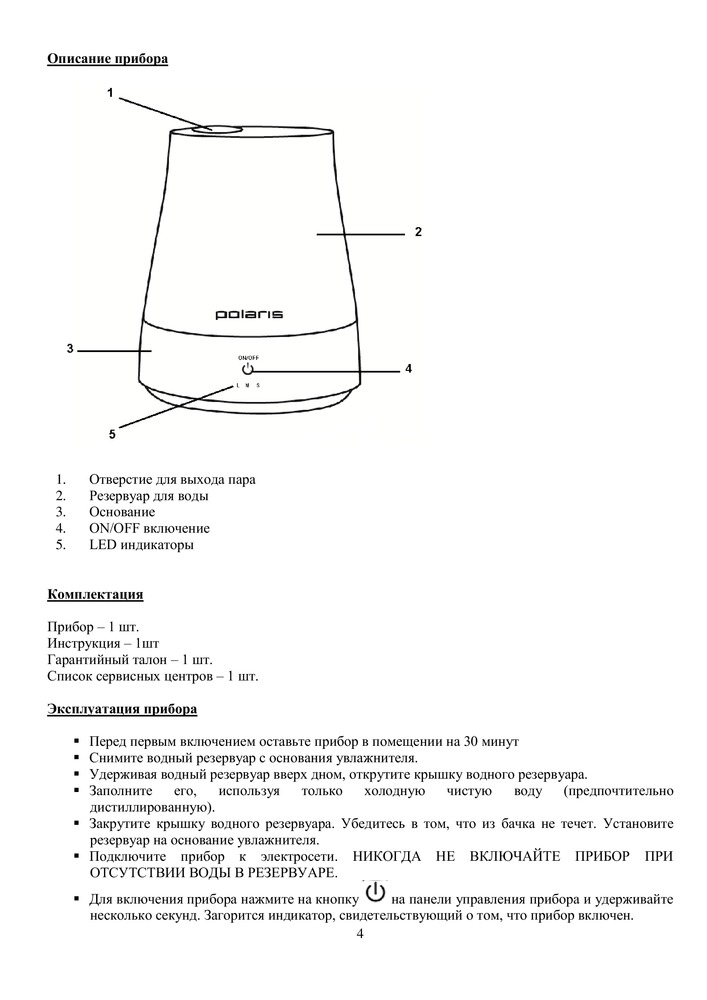 Хотелось бы написать, что очень довольна покупкой. В пункте выдачи заказов мне его открыли, правда, проверять не хотели (воду наливать), и он не включался. Потом, все таки, воду налить пришлось и увлажнитель включился, начал работать. Сенсорный, три режима работы: сильный, средний и слабый. На 4 литра воды, что на мой взгляд очень удобно. Оформили гарантию на товар и еще 30 дней есть на возврат товара в случае брака. С подсветкой, шум еле уловимый. Спасибо за товар!!!