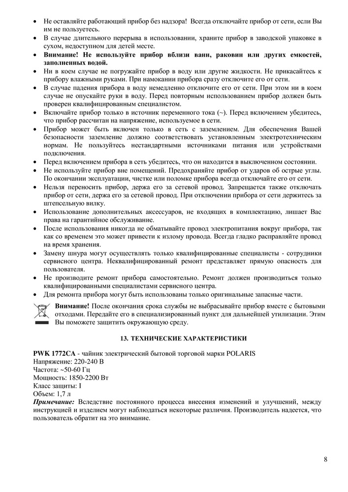 Polaris Чайник PWK 1772CAВ данный момент этот товар отсутствует в продаже. Возможно, у нас найдется аналогичный или похожий товар здесь. Электрочайник изготавливается из высокопрочной нержавеющей стали. Этот материал устойчив к коррозии и к другим воздействиям, а также не содержит вредных веществ, которые могли бы попадать в воду при нагреве. |
