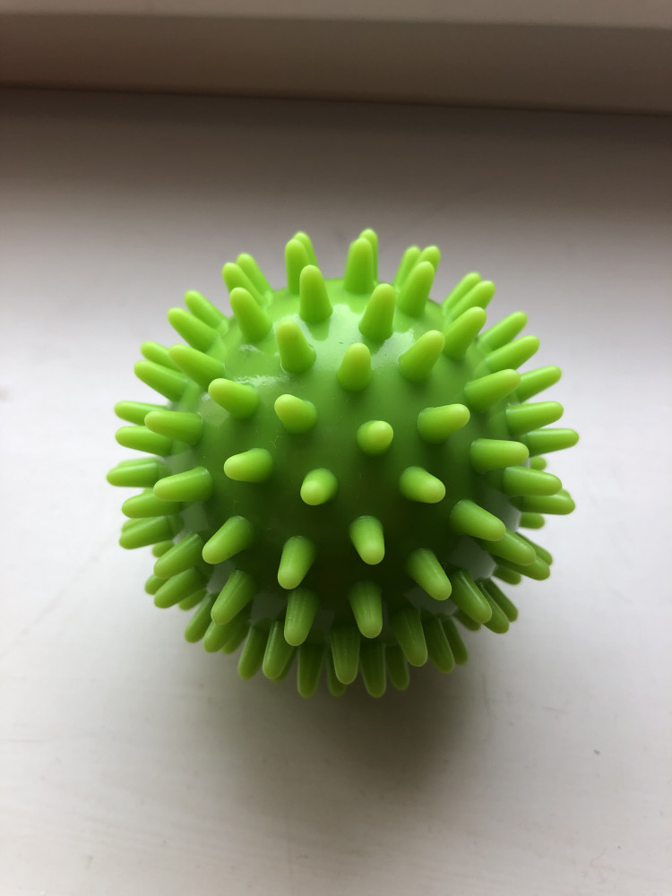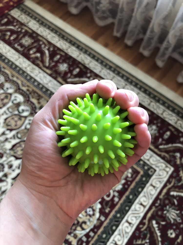 Шикарный мяч! Взяла для массажа коленей и ступней. Сразу стало легче.мяч достаточно упругий, и по размеру очень удобный.