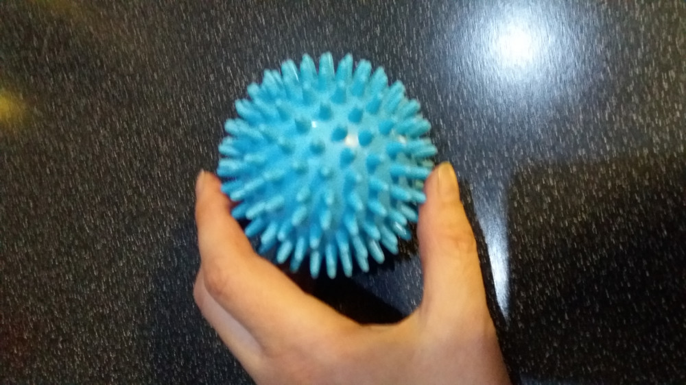 Катать стопами по полу с этим мячом очень приятно и полезно, я так делаю