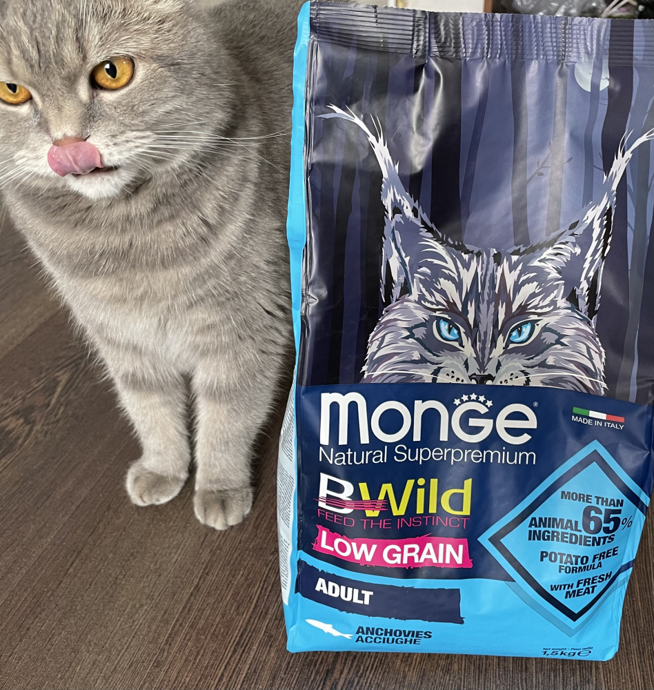 Monge Корм для взрослых кошек с анчоусами «Bwild» (1,5 кг)+361 приятный вкус качественный состав мелкие гранулы