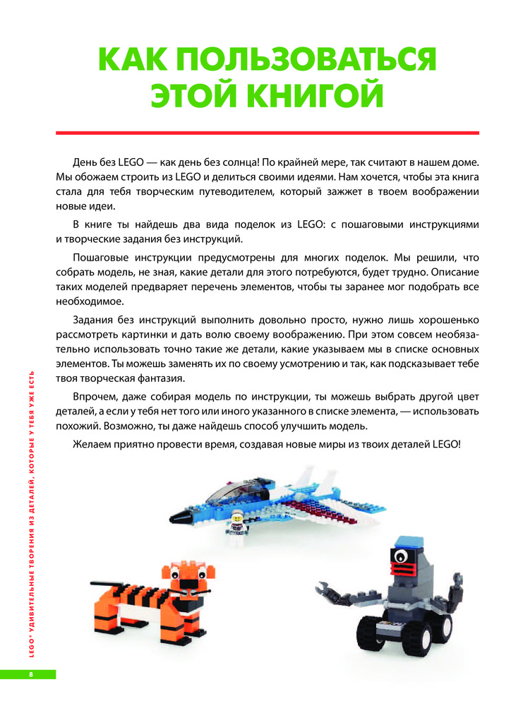 Ребенку книга очень понравилась, он в восторге, что из лего деталей можно собрать столько разнообразных поделок! Спасибо!
