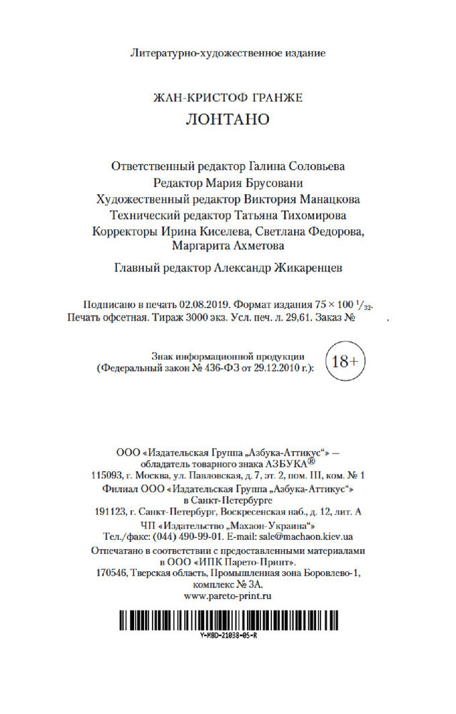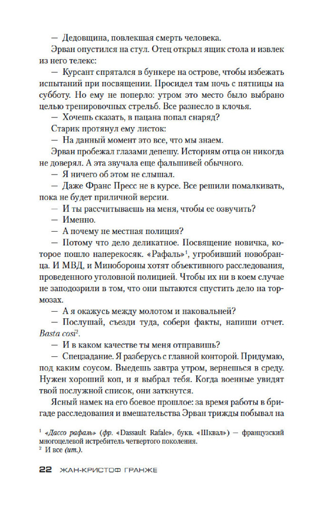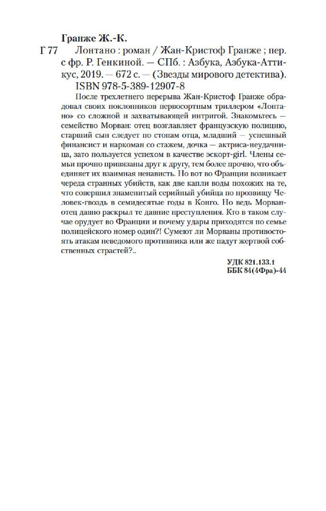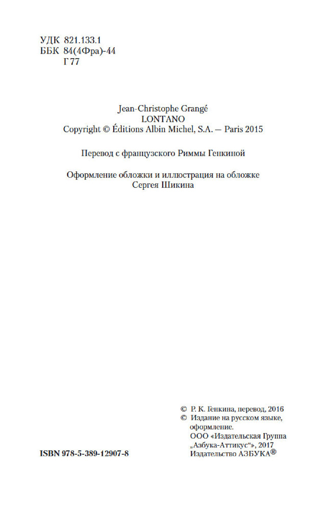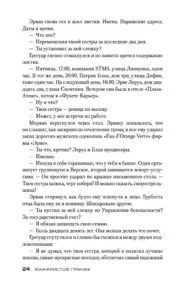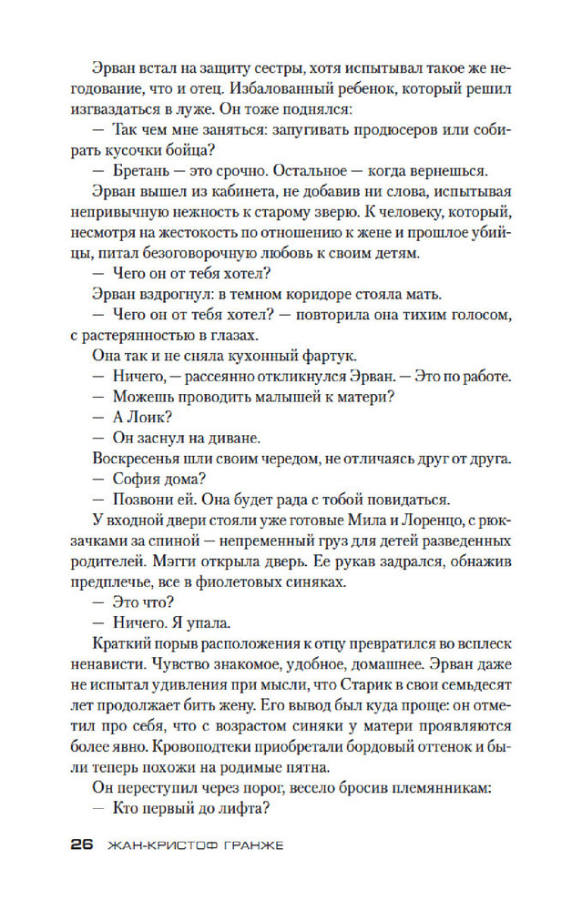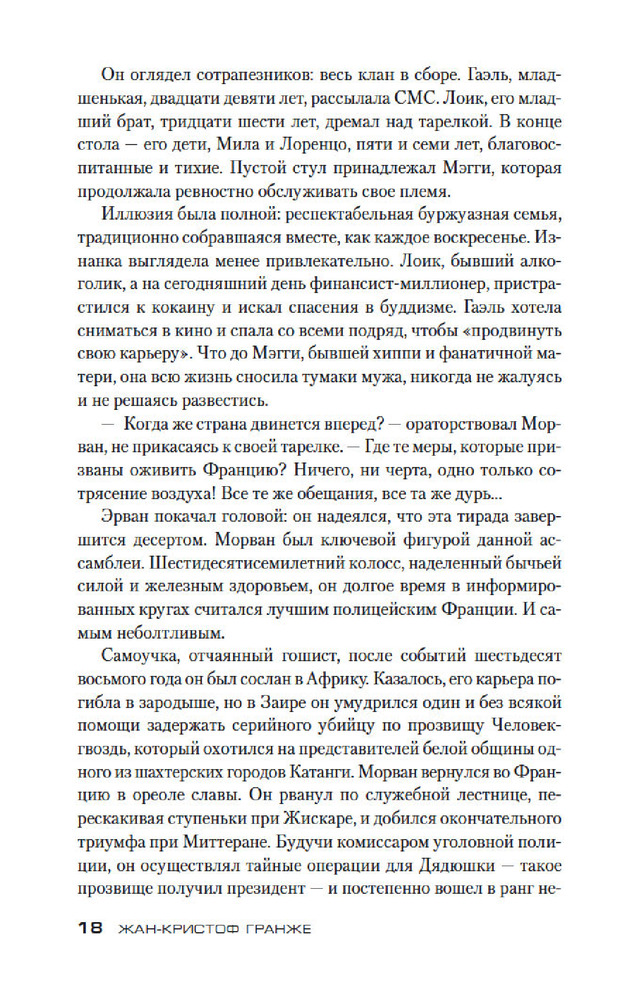 Хороший детектив про семью Морванов. Заказала Конго реквием - продолжение истории. Гранже классно пишет детективы-триллеры. Мой любимый писатель. Есть кое-где орфографические ошибки, но не критично. Перевод хороший, соответствует тексту-оригиналу.