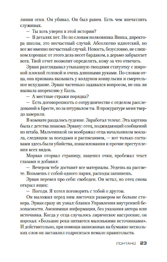 ЛонтаноВ данный момент этот товар отсутствует в продаже. Возможно, у нас найдется аналогичный или похожий товар здесь. Серия: Звезды мирового детектива (обложка) После трехлетнего перерыва Жан Кристоф Гранже вновь радует своих поклонников первосортным триллером «Лонтано» со сложной и захватывающей интригой. Знакомьтесь - семейство Морван: отец возглавляет французскую полицию, старший сын следует по стопам отца, младший – успешный финансист, не чуждый наркобизнесу, дочка – актриса-неудачница, зато пользуется успехом в качестве экскорт-girl. Члены семьи прочно привязаны друг к другу, тем более прочно, что объединяет их взаимная ненависть. Но вот во Франции возникает череда странных убийств, как две капли воды похожих на те, что совершил знаменитый серийный убийца по прозвищу Человек-Гвоздь в семидесятые годы в Конго. Но ведь Морван-отец давно раскрыл те давние преступления. Кто в таком случае орудует во Франции и почему удары приходятся по семье полицейского номер один?! Сумеют ли Морваны противостоять атакам неведомого противника или же падут жертвой собственных страстей? |