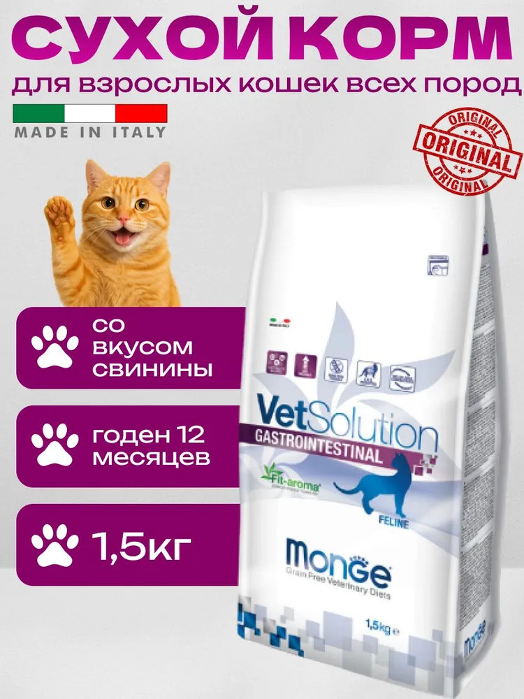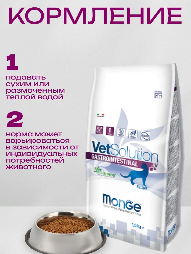 Monge Сухой диетический корм для кошек при заболеваниях ЖКТ «VetSolution Cat Gastrointestinal»помогает при диарее подходит при панкреатите уменьшает жировики подходит после отравления низкая поедаемость В данный момент этот товар отсутствует в продаже. Возможно, у нас найдется аналогичный или похожий товар здесь. Серия: VetSolution Условия хранения товара: температурный режим от −10 до +25°С. |