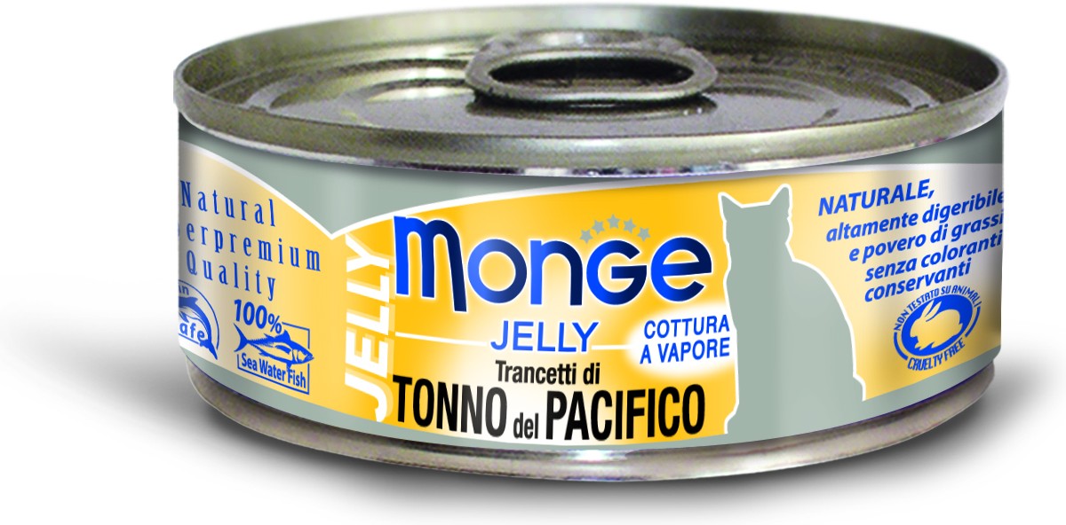 Консервированный итальянский корм для кошек Monge Cat Jelly Superpremium Quality, кусочки тунца в желе, является замечательным ежедневным питанием, которое полностью изготовлено из натуральных ингредиентов. Вареные на пару по итальянскому рецепту, и отсутствие искусственных красителей и консервантов обеспечивает незабываемый вкус, свежесть всех ингредиентов и высокую питательность каждого корма. Корм так же рекомендован очень привередливым животным, а так же выздоравливающим от анорексии. Корм содержит минимальный объем насыщенных жиров, благодаря чему животные легко удерживают оптимальный вес. Корм обогащен витамином Е, который является известным антиоксидантом, призванным защитить клеточные мембраны от повреждения свободными радикалами. продукт при изготовлении не тестируется на животных.