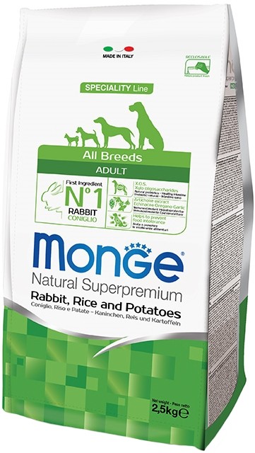 | Monge Корм для взрослых собак всех пород с кроликом, рисом и картофелем+131 (бонус)