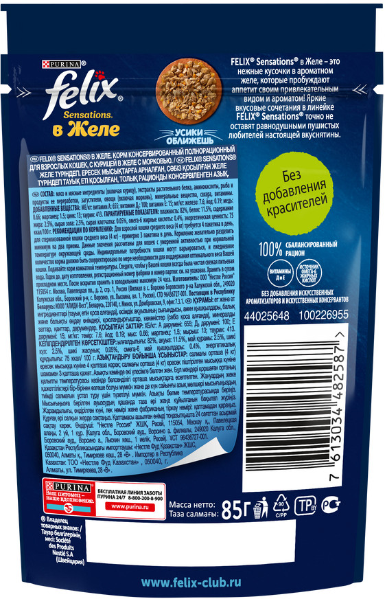 Felix Корм для кошек с курицей в желе с морковьюВ данный момент этот товар отсутствует в продаже. Возможно, у нас найдется аналогичный или похожий товар здесь. Серия: Sensations Условия хранения товара: температурный режим от -10 до +25°С. |