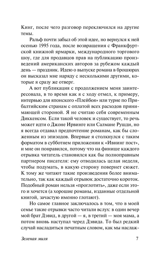 В данный момент этот товар отсутствует в продаже. Возможно, у нас найдется аналогичный или похожий товар здесь. Роман-событие, ставший лауреатом премии Брэма Стокера и вдохновивший Фрэнка Дарабонта на создание культового фильма, в котором Том Хэнкс сыграл, возможно, свою лучшую роль.