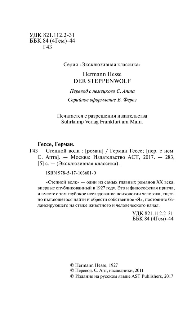 💳 Оплатить за товар можно при получении 🇰🇿 Есть бесплатная доставка по Казахстану от 1 дня 🎁 Копите бонусы с каждой покупки «Степной волк» — один из самых главных романов XX века, впервые опубликованный в 1927 году. Это и философская притча, и вместе с тем глубокое исследование психологии человека, тщетно пытающегося найти и обрести собственное «Я», постоянно балансирующего на стыке животного и человеческого начал. |