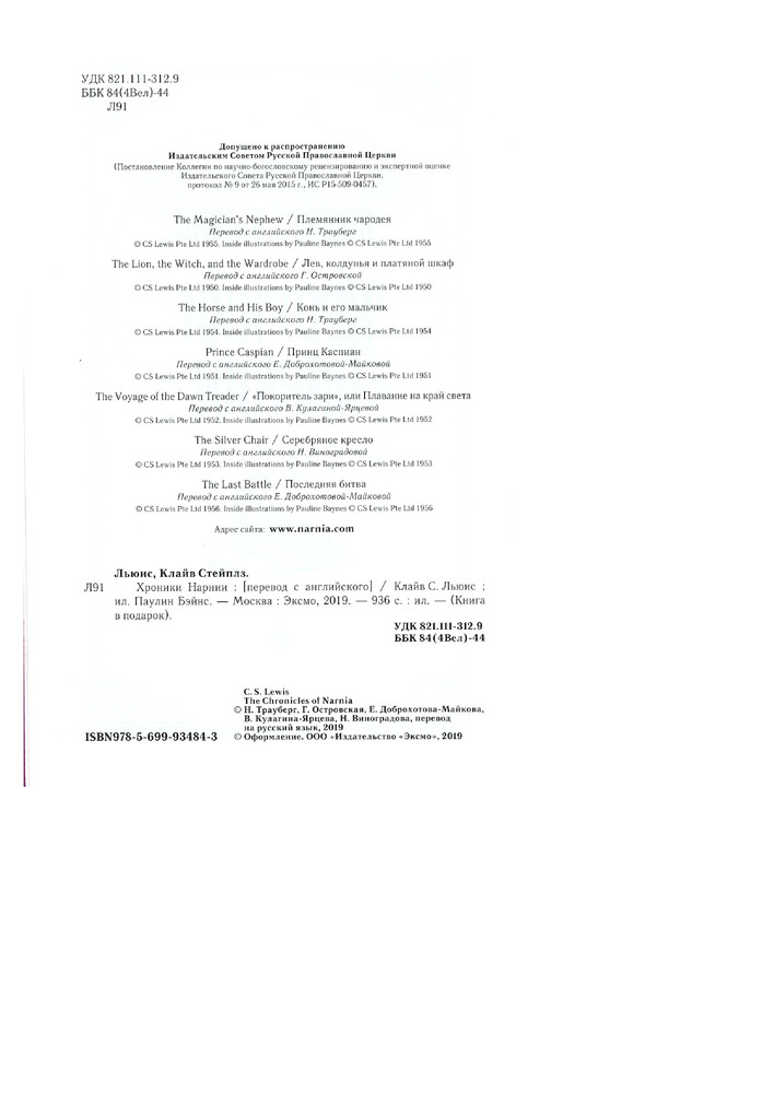 Хроники НарнииВ данный момент этот товар отсутствует в продаже. Возможно, у нас найдется аналогичный или похожий товар здесь. Серия: Книга в подарок Исправленное и дополненное переиздание знаменитой эпопеи Клайва Льюиса. Данная книга отличается от предыдущей тем, что теперь в ней присутствуют все иллюстрации Паулин Бэйнс, а их более трёхсот. Английский иллюстратор официально признана «художником Нарнии». Также русифицированы все карты чудесной страны. Взять в руки такое чудесное, сделанное с любовью издание — мечта любого библиофила. Благородный шелковый переплет, золотое тиснение, трехсторонний золотой обрез, шелковая ленточка ляссе, эксклюзивная мелованная бумага — роскошное издание для ценителей книги! |