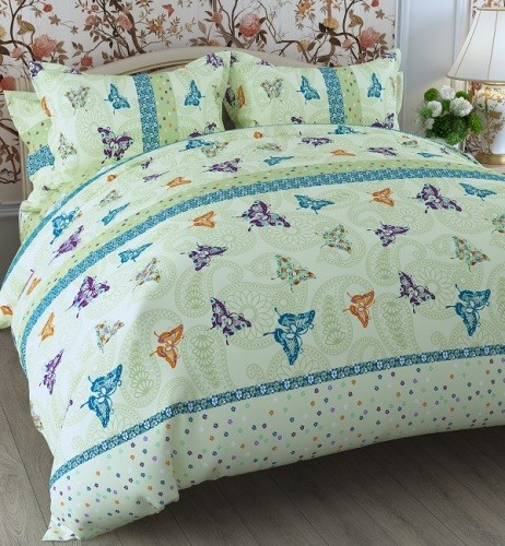 Полное разочарование( Какой милый комплект на фото - нежный, летний, вихрь бабочек. На самом деле оказалось, на грязно-бежевом поле те милые бабочки. Словно на старом бабушкином халате. Свернула, и не хочется доставать. Очень жаль, что не пишут - цветовая гамма полностью противоположна заявленной. Хотя качество может быть и на высоте. Но, пока не хочется его проверять(