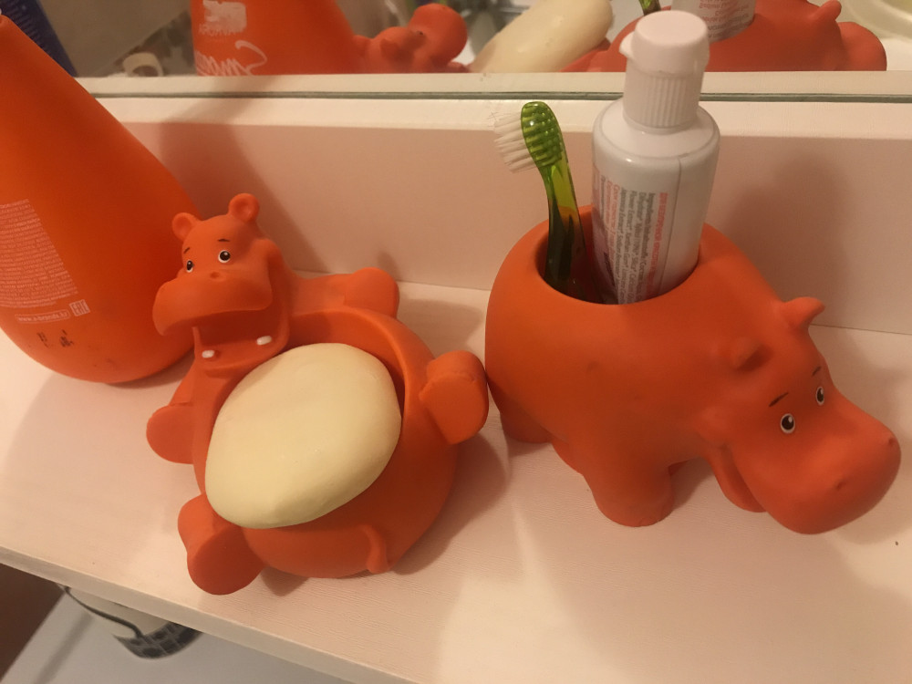 Вот они мои оранжевые бегемотики. Мыльница правда немного маловата для стандартного мыло. Но ничего страшного