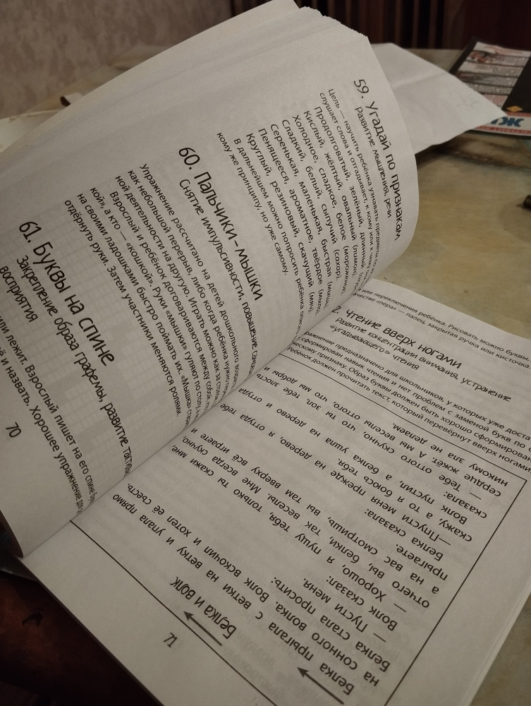 Книга очень понравилась, интересные и занимательные упражнения. Автор даёт рекомендации по упражнениям для улучшения памяти, скорости чтения и т.д. Моим мальчишкам 6 и 10 лет, оба с удовольствием играют. В первый же получения книги приступили к занятиям.