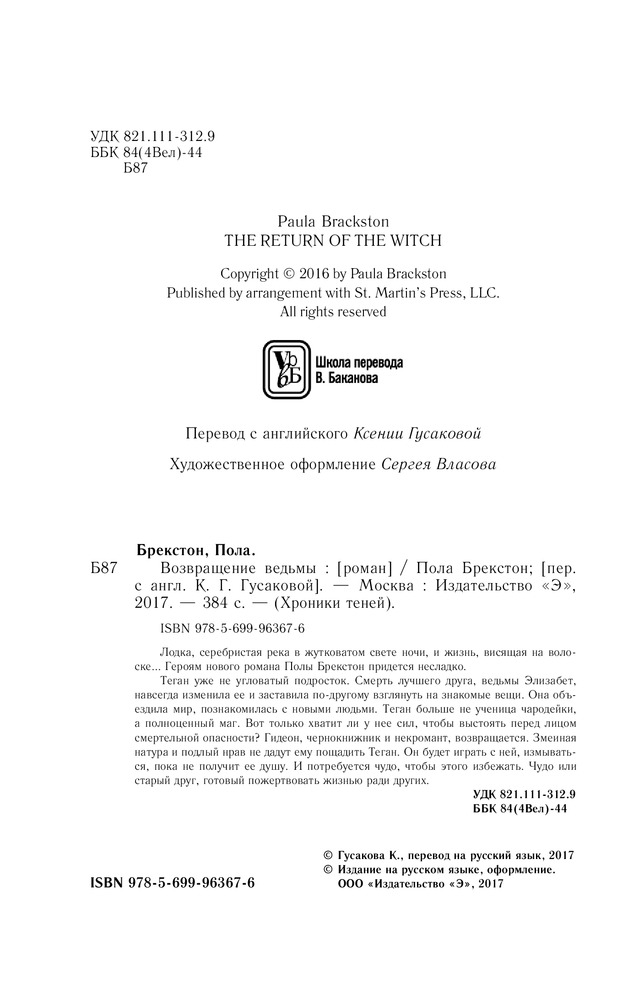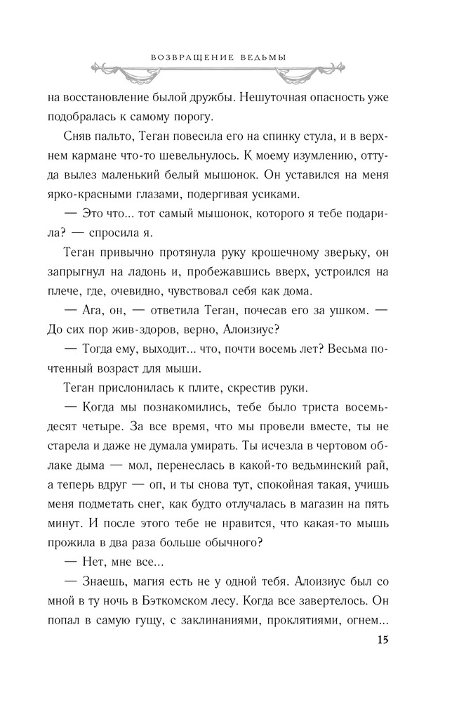 Теган уже не угловатый подросток. Смерть лучшего друга, ведьмы Элизабет, навсегда изменила ее и заставила по-другому взглянуть на знакомые вещи. Она объездила мир, познакомилась с новыми людьми. Теган больше не ученица чародейки, а полноценный маг. Вот только хватит ли у нее сил, чтобы выстоять перед лицом смертельной опасности? Гидеон, чернокнижник и некромант, возвращается. Змеиная натура и подлый нрав не дадут ему пощадить Теган. Он будет играть с ней, измываться, пока не получит ее душу. И потребуется чудо, чтобы этого избежать. Чудо или старый друг, готовый пожертвовать жизнью ради других.