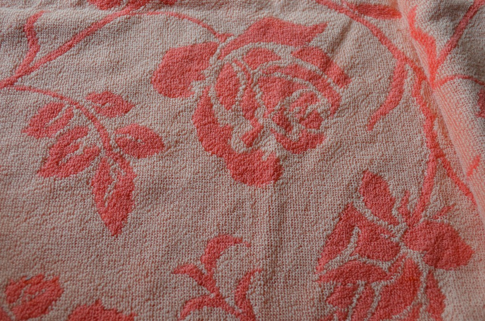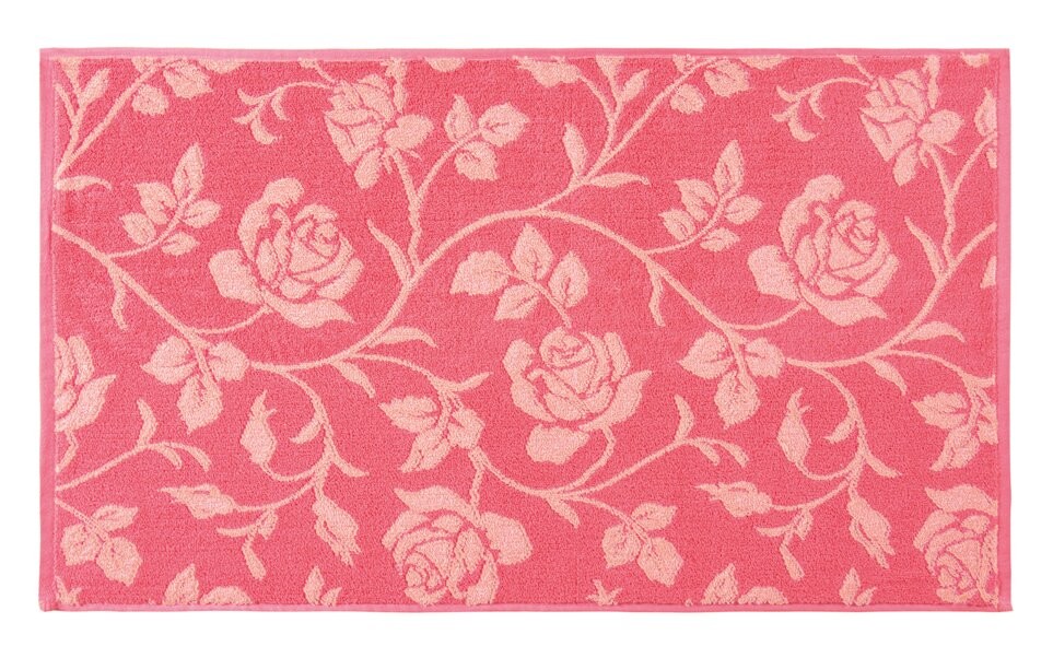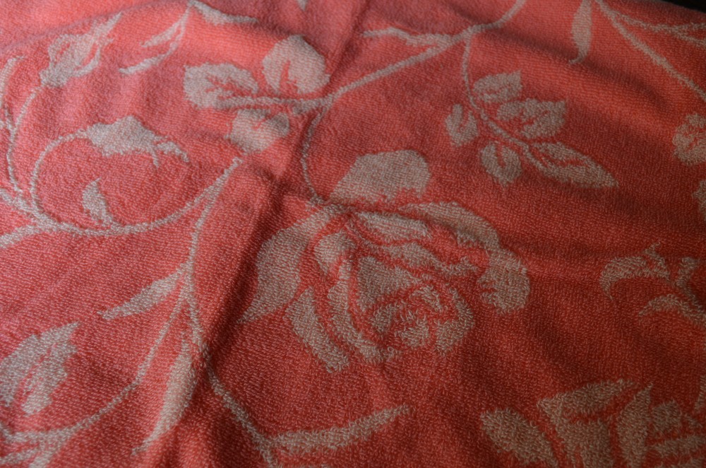 Не понравилась расцветка, ожидала большего. Рисунок розы не очень выражен, сливается с основной окраской. Впитывает хорошо, после стирки стало помягче.