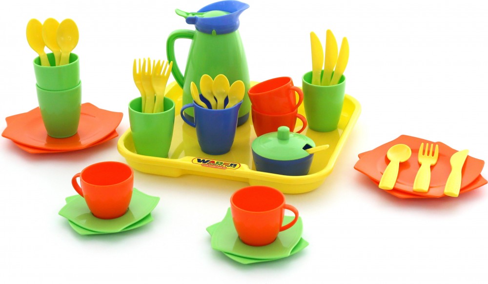 В данный момент этот товар отсутствует в продаже. Возможно, у нас найдется аналогичный или похожий товар здесь. Серия: Алиса Комплект посуды Полесье Алиса будет интересен каждой девочке. Великолепный чайный набор, состоящий из кофейника, подноса, стакана под сливки, масленку, 4 чашек, 4 стаканов, 4 блюдец, 4 тарелок, 4 вилок, 4 ножей, 4 ложек. Посуда оформлена в ярком дизайне. С игрушкой малышка сможет накрыть на стол, угощать гостей или отправиться на пикник. Посуда развивает чувство гостеприимности и фантазию крохи.