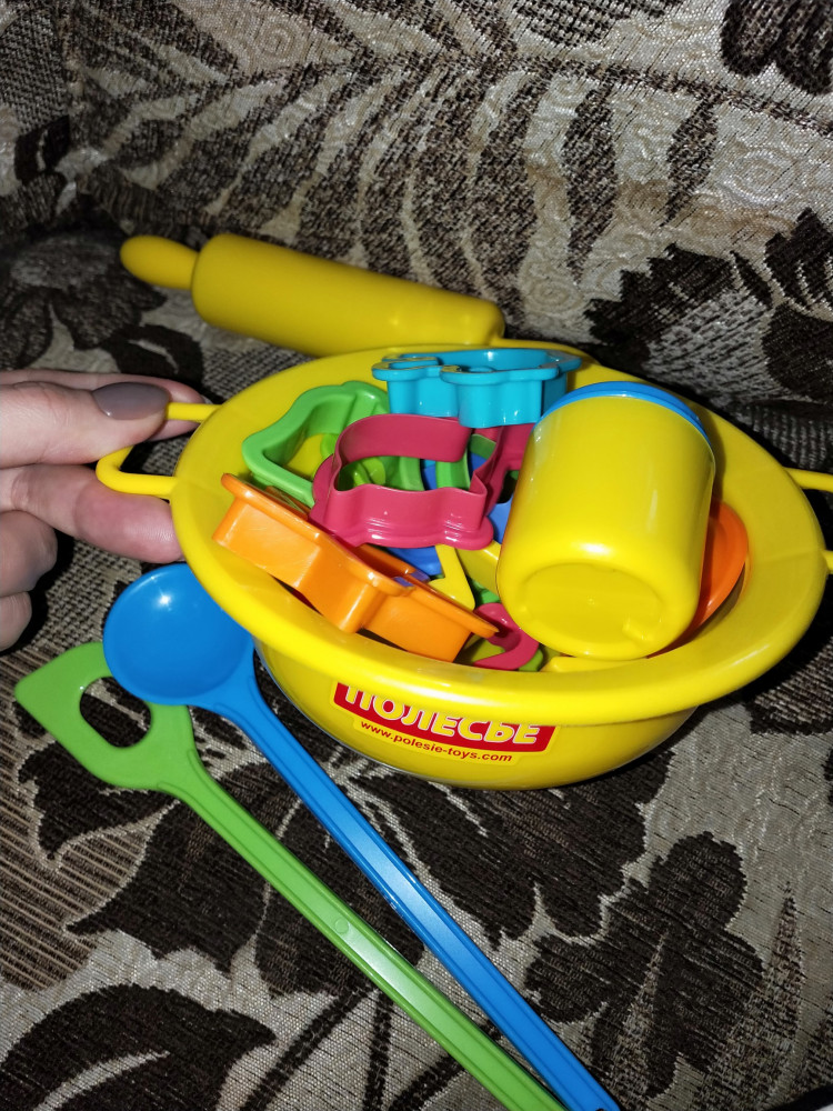 Очень хороший наборчик! Моей дочери 4 года, она очень любит возиться с тестом, поэтому для нее оказался очень кстати. И качество просто замечательное! Уже в который раз убеждаюсь, что лучше Полесья ничего нет!