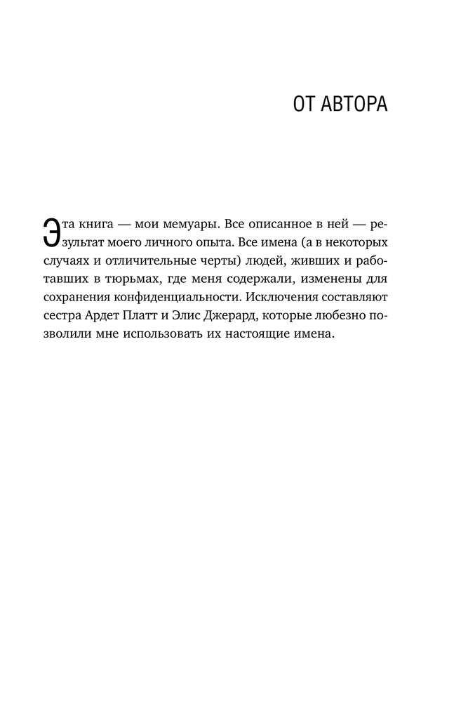 Прочитала эту книгу за пару дней. Если честно, все время ждала каких-то неожиданных событий, а шло просто повествование жизни в заключении, о тюремных правилах и обычаях, об отношении женщин, оказавшихся в таких сложных ситуациях. Интересно было бы почитать также подобную true story о заключении в тюрьмах стран постсоветского пространства. Мне кажется, что разница будет колоссальной! Очень удивлялась, читая о теплых отношениях заключенных, отсутствии каких-то унижающих и оскорбляющих ситуаций, о сохранении прав преступников и т.д. Может быть, потому что это было больше 10 лет назад. Но, в целом, книга понравилась, разок прочитать обязательно ее надо, просто для развития своих представлений о жизни, отличающейся от жизни обычных людей! Спасибо команде Flip.kz за оперативность и внимание к клиентам, как и всегда!