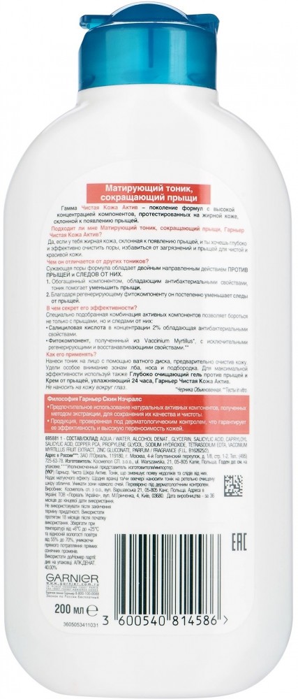 Garnier Тоник матирующийВ данный момент этот товар отсутствует в продаже. Возможно, у нас найдется аналогичный или похожий товар здесь. Серия: Чистая кожа актив Сужающая поры формула обладает двойным действием от прыщей и следов от них: |