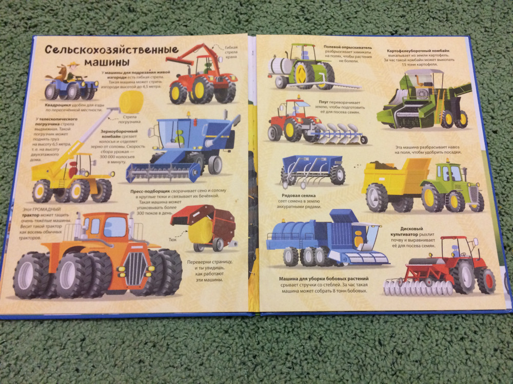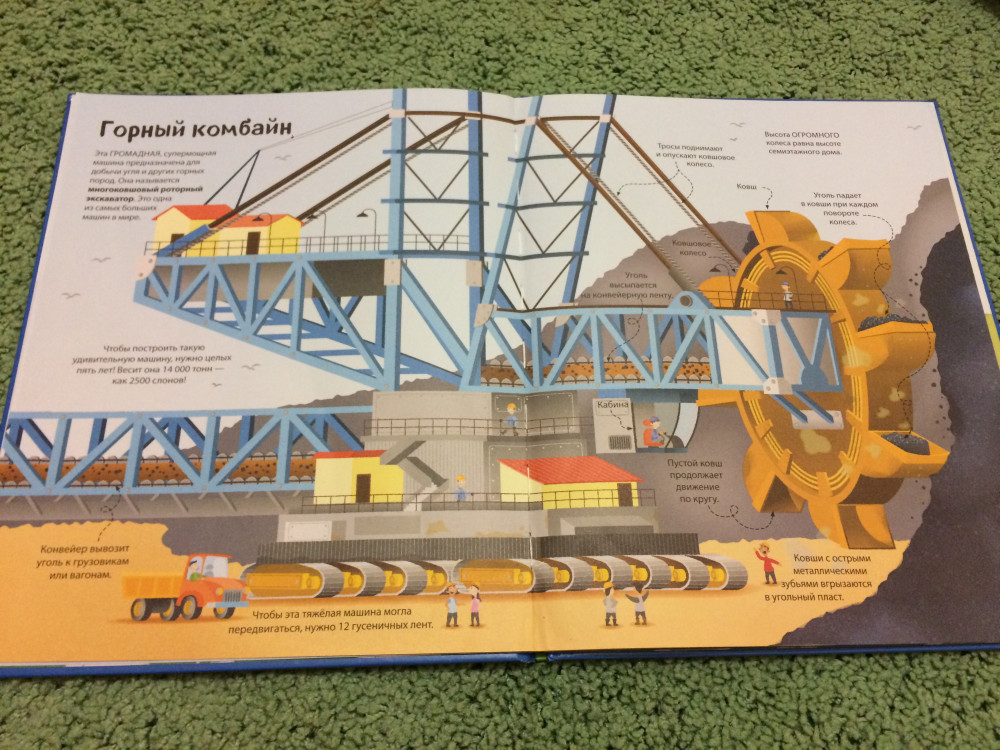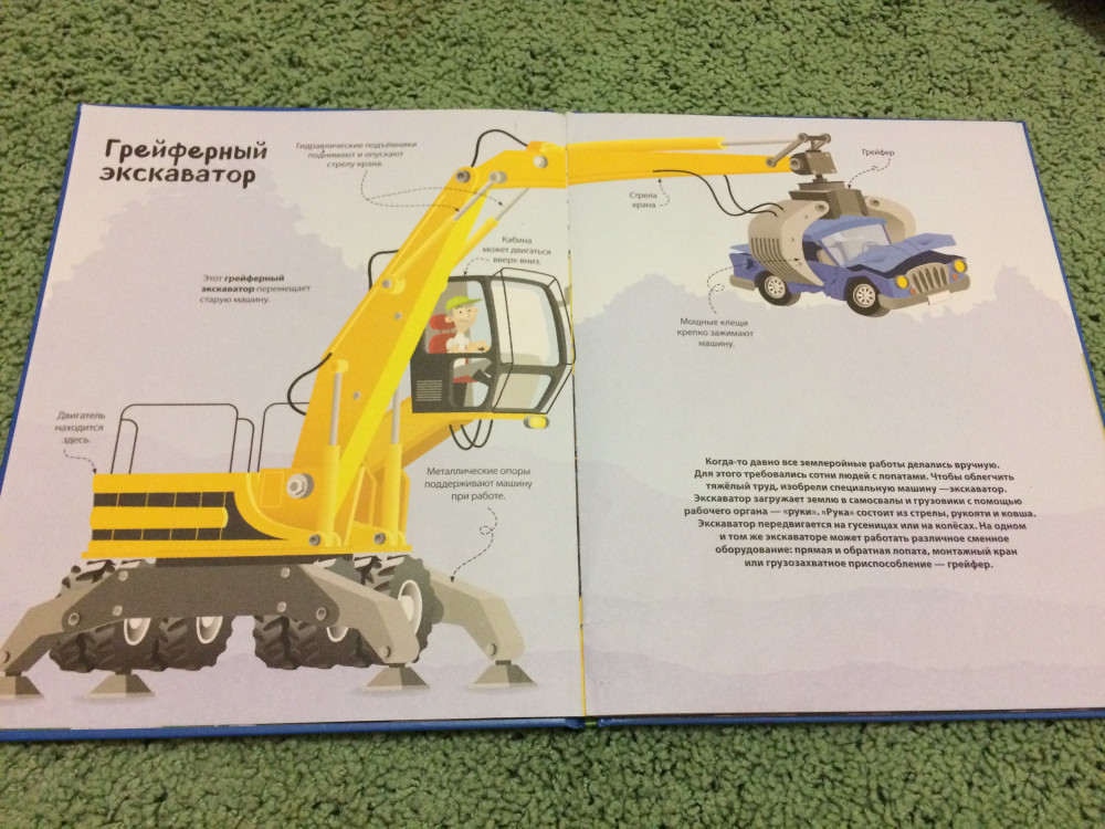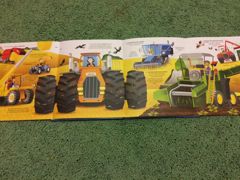 Книга шикарная, картинки четкие и яркие, интересные развороты, небольшой познавательный текст. У ребенка сейчас самые любимые машинки - строительные и разнообразная спецтехника. Всегда отличный сервис, спасибо за быструю доставку!