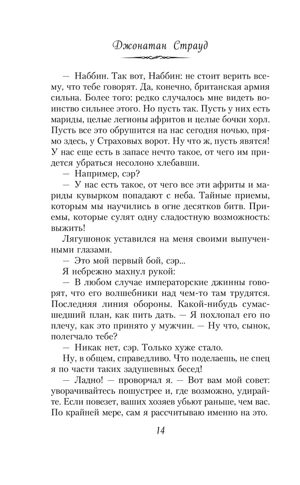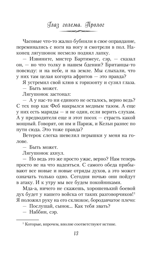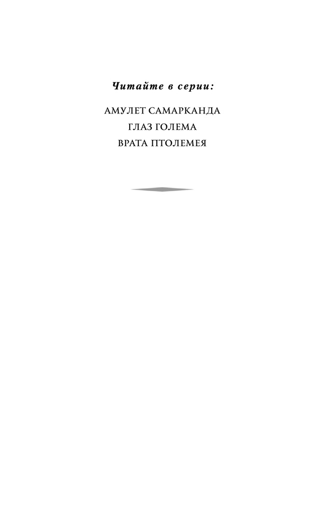увлекательный сюжет твердый переплет хорошее состояние В данный момент этот товар отсутствует в продаже. Возможно, у нас найдется аналогичный или похожий товар здесь. Серия: Трилогия Бартимеуса Хорошо быть молодым и талантливым волшебником! Натаниэлю всего четырнадцать, а его карьера уже вызывает восхищение и зависть. Его ценит начальство, и даже сам премьер-министр ему покровительствует. Одна беда — друзей нет, зато недоброжелателей и врагов хоть отбавляй. А тут, как назло, в Лондоне по ночам начинает твориться форменное безобразие, и шеф полиции утверждает, что это дело рук тех самых хулиганов, поймать которых было поручено Натаниэлю. В такой переделке без сильного союзника не обойтись. И юный волшебник вновь вызывает джинна по имени Бартимеус...