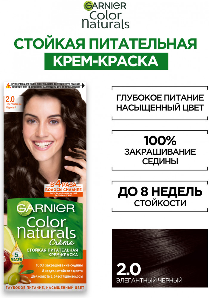 Garnier Крем-краска для волос стойкая питательная «Color Naturals», оттенок 2 Элегантный черный