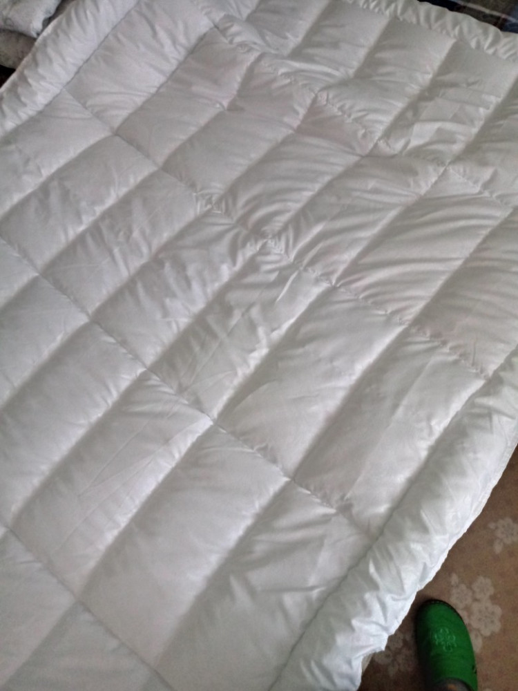 Пришло во время. Одеяло белоснежное. Все шва проверила месте. Доставил курьер на адрес. Одеяло тёплое, мягкое. Взяла на пробу дочке. Ей нравится. Буду ещё заказывать. За такую цену я не ожидала, что буду довольна покупкой. Так что ставлю 5.