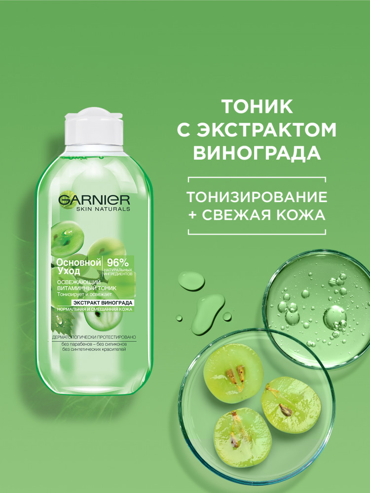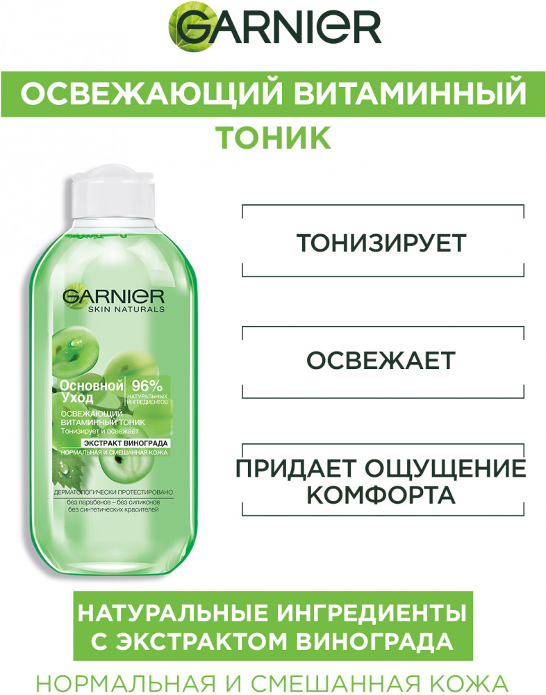 Garnier Тоник для лица «Основной уход. Экстракт Винограда» освежающий, для нормальной и смешанной кожиВ данный момент этот товар отсутствует в продаже. Возможно, у нас найдется аналогичный или похожий товар здесь. Серия: Основной Уход Очищающие средства гаммы «Основной уход» на 96% состоят из ингредиентов натурального происхождения. Освежающий витаминный тоник обогащен экстрактом винограда, известного как природный источник свежести. Тоник завершает процедуру снятия макияжа, удаляет остатки загрязнений и заметно тонизирует для идеально чистой и свежей кожи, сияющей здоровьем. |