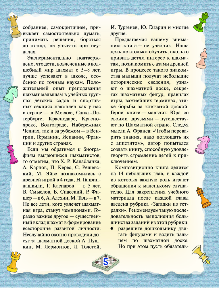 💳 Оплатить за товар можно при получении 🇰🇿 Есть бесплатная доставка по Казахстану 🎁 Копите бонусы с каждой покупки Серия: Шахматная школа Шахматы — самая популярная настольная игра в мире. Она развивает образное и логическое мышление, воспитывает усидчивость, внимательность, целеустремленность. Обучить детей шахматным азам можно с двух лет, считает методолог шахматного образования Игорь Георгиевич Сухин. Благодаря его методике, книге-сказке, дети погружаются в шахматный мир с интересом и большим удовольствием, а родители узнают, как грамотно организовать шахматные занятия, закрепить пройденный материал и превратить шахматную доску в увлекательный мир приключений. Может, будущий чемпион растет именно в вашей семье? |