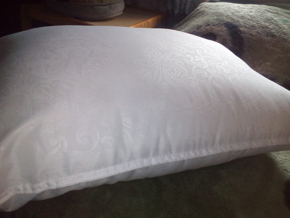 Подушка очень понравилась, белоснежный цвет, тиснение, хорошо заполнена, мягкая, удобная