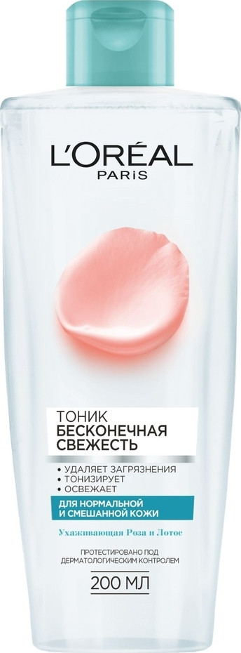 L'Oreal Paris Тоник для лица очищающий с экстрактами розы и лотоса «Бесконечная Свежесть»В данный момент этот товар отсутствует в продаже. Возможно, у нас найдется аналогичный или похожий товар здесь. Серия: Бесконечная свежесть Тоник для лица «Бесконечная Свежесть» учитывает потребности нормальной и смешанной кожи. Тоник очищает, удаляет остатки макияжа и освежает. Ваша кожа очищена от макияжа и загрязнений. Она становится более гладкой, мягкой и красивой. Тонкий цветочный аромат позволит вам получить истинное удовольствие от чувственный опыт от ухода за кожей. |
